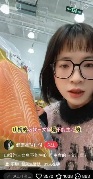 然而,超市里一些看似刺身级的生鱼片,其实却并非可生食海鲜——比如山姆会员超市销路很好的这一款1KG冰鲜三文鱼: