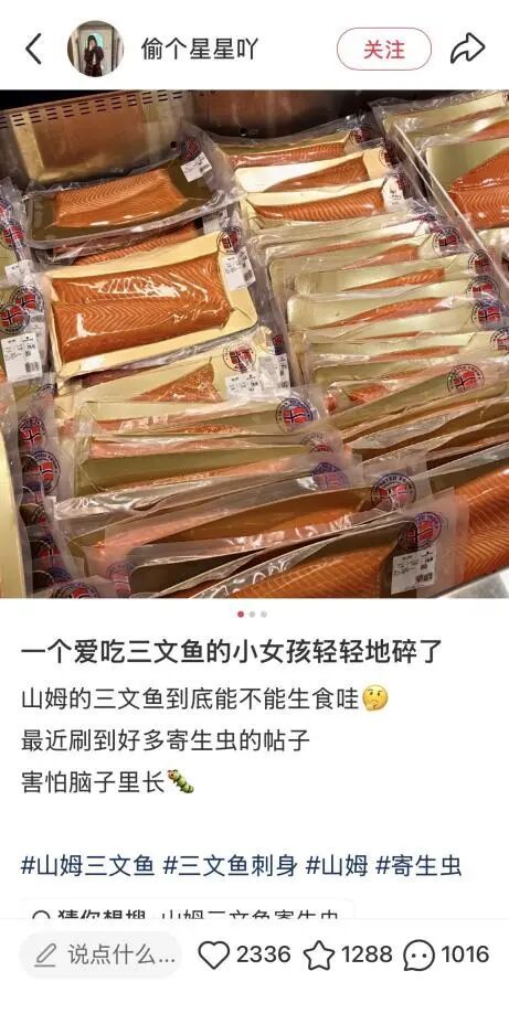 很多博主表示,发现这款三文鱼不能生吃的时候,“悄悄地碎了”“天塌了”,因为有的人已经生吃了好久。